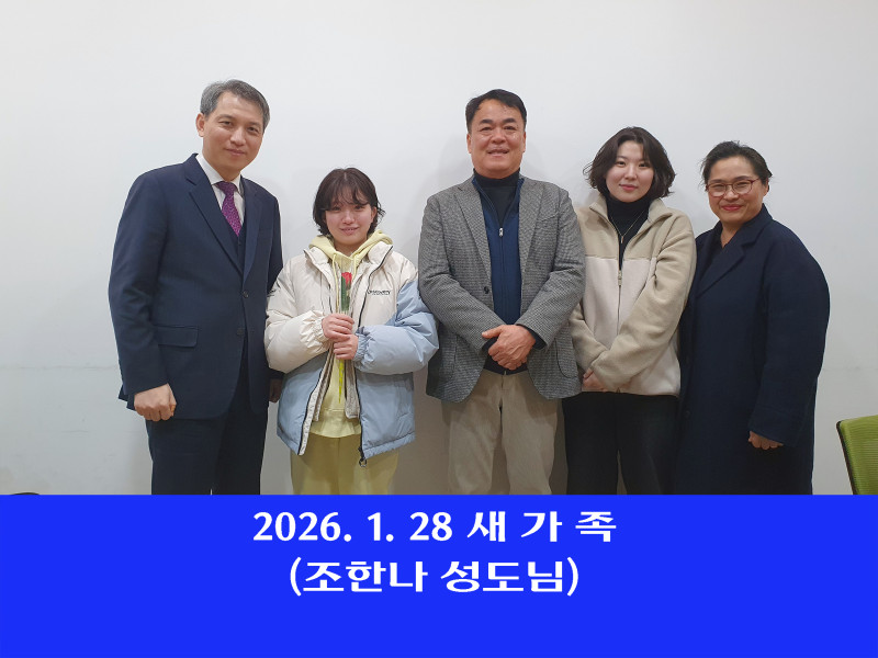 2026.01.28 새가족 페이지 정보 작성자 관리자 작성일26-02-06 09:44 조회12회 댓글0건 관련링크 목록 본문 오직 예수님 환영합니다♥︎ 댓글목록 등록된 댓글이 없습니다. 목록