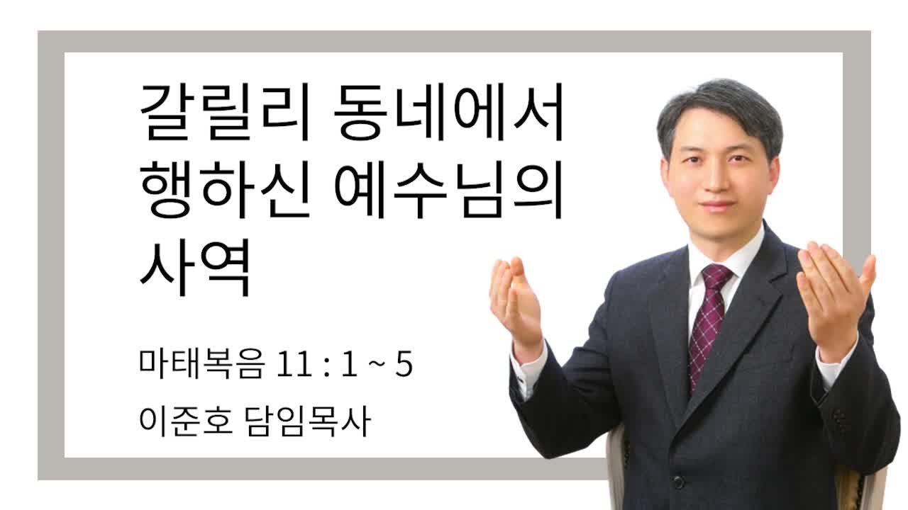 갈릴리 동네에서 행하신 예수님의 사역 페이지 정보 작성자관리자 작성일26-04-26 17:05 조회4회 댓글0건 관련링크 동영상보기0회 연결 목록 본문 설교날짜 : 2026-04-26 설교제목 : 갈릴리 동네에서 행하신 예수님의 사역 설교본문 : 마태복음 11 : 1 ~ 5 설 교 자 : 이준호 목사 오직 예수님~! 사랑합니다~♥︎ 댓글목록 등록된 댓글이 없습니다. 목록